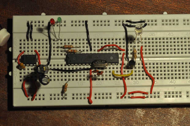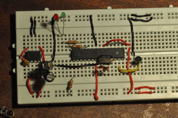 Ahora, el pin de salida va a ser PD0, o PORT D, PIN 7. En pins numéricas, que es el número 13. Localizar (es el segundo de la parte inferior en el lado izquierdo del chip) así que ya sabéis dónde enchufar cosas en.