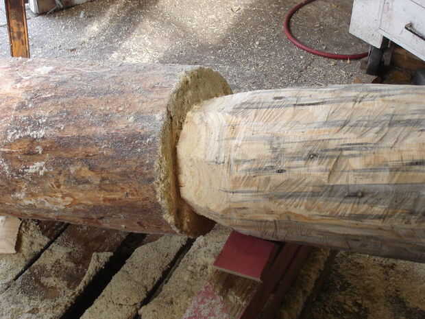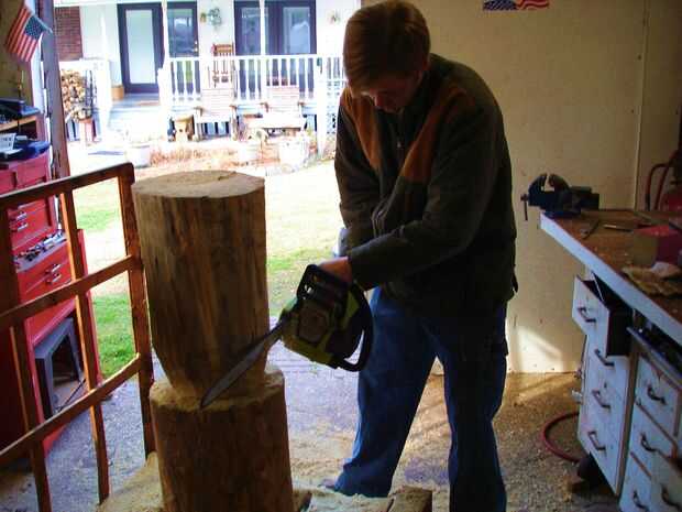 Con dimensiones "ideales" en que pueden comenzar el registro de talla. Cómo ir sobre esto es suya, pero mi método preferido es una motosierra. Le sugiero que comience con la salida de humos y talla la parte superior más adelante. Recuerde que usted está tratando de obtener la forma general en esta etapa.