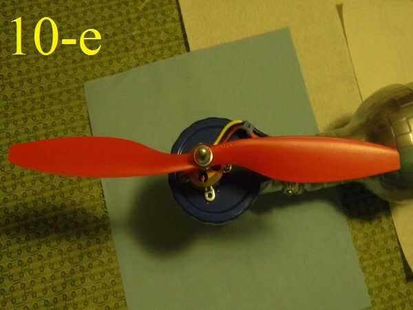 10-e. También decidí pintar mi hélices claro rojo, para que sean más visibles durante el vuelo. Yo con cuidado húmedo arena cada capa fina de pintura en aerosol, para crear una superficie lisa, delgada uniforme que no agregar peso ni crear vibración adicional, que puede afectar negativamente el vuelo del quad.