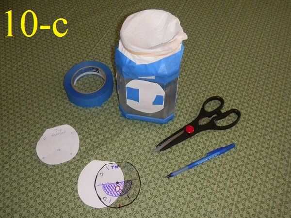 10-c. El contenedor de la cápsula también debe ser enmascarado en la parte superior para entrada de luz. (Algunos tableros de control requieren luz para funcionar correctamente. También tengo planes de usar luces LED que quiero ver claramente desde la parte superior de la cápsula). Yo también enmascarados los lados donde se montarán los brazos del fuselaje.