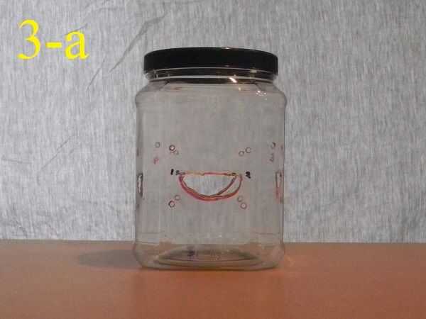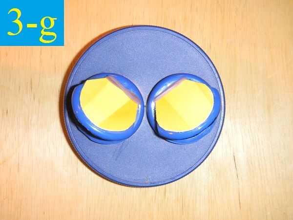 Asamblea (1) 3-e. dentro del contenedor de la cápsula se iniciará en la parte inferior. Puesto que la base se levanta en mi recipiente, pegué estos dos círculos de espuma junto con el cemento de contacto para formar una plataforma estable, incluso para la vivienda de la Junta de control. Si está utilizando este tipo de envase para su cápsula, asegúrese de cortar el círculo de espuma de la parte inferior ligeramente más grande que la superior, como un panal de abejas, por lo que tendrá la forma de la parte inferior del envase.