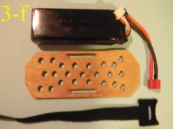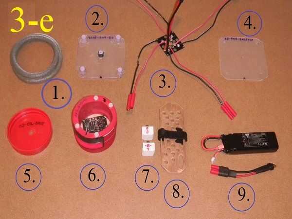 3-e. (7, 8, 9) es necesario crear un entorno estable y seco para la batería en el contenedor de la cápsula. En mi quad copter, la batería y su soporte se encuentra en la parte superior, justo debajo de la tapa del envase.