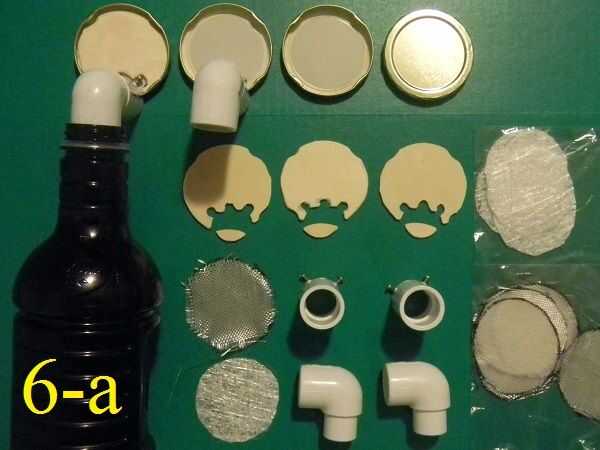 6-l. Este conector de codo encaja perfectamente en la abertura del envase Arizona Ice Tea™ de 40 oz. Utilice 2 - #6 por tornillos de acero inoxidable de 1/2 pulgada para conectar cada codo a ambos lados de la botella de té. Seleccione una broca que sea ligeramente más pequeña que el tornillo #6 para la perforación de los agujeros, para que los tornillos se sujete con fuerza dentro de la botella. Yo también blunted el extremo de cada tornillo antes de tiempo con una herramienta de Dremel™, para que los cables no se reduciría.