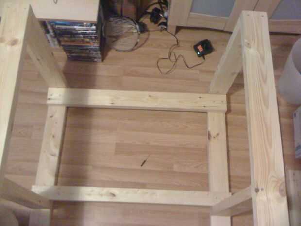 Lo siguiente es los bastidores posteriores. Usé el CLS más amplio para hacer el soporte trasero superior y el CLS más estrechas para hacer el soporte inferior, Empuje la parte superior contra el soporte superior en las piernas para la fuerza adicional. Luego cuando todas atornilladas, stand up y pop sus listones en la parte superior para ver cómo va a ver!