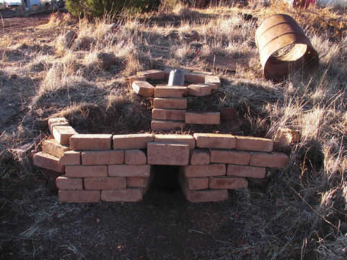 -Pila de ladrillos alrededor de cualquier parte expuesta de la tubería de la estufa y de cualquier parte de la colina que debe retener. Posterior se llenan de suciedad.