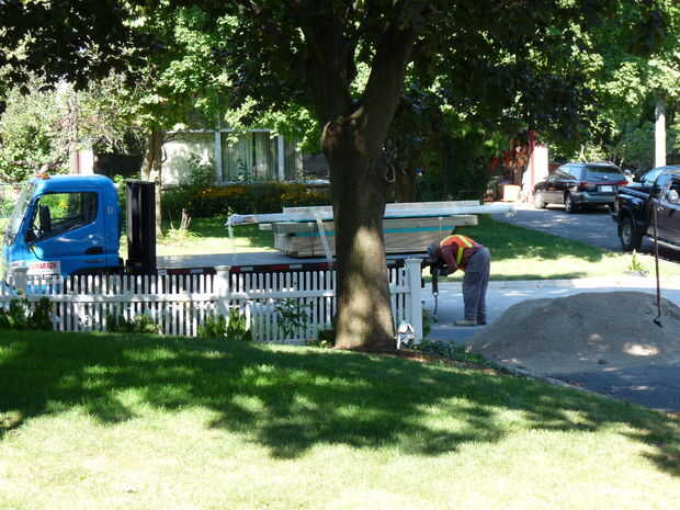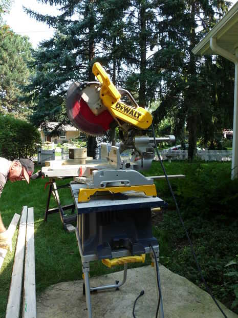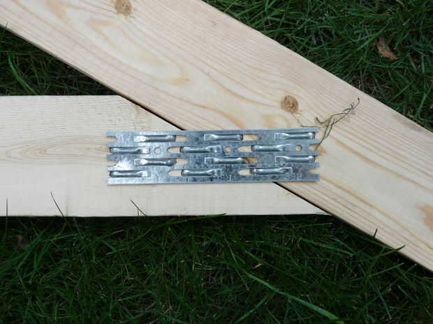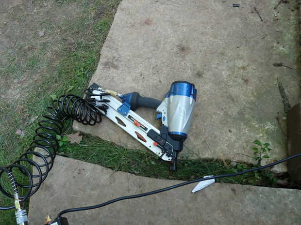 La estructura es la parte más importante de la estructura sobre el suelo porque se endurece hasta los tableros de madera contrachapada y soporta el techo.  Usted tendrá un montón de 2 x 4 y una manera de atarlos.  Se utilizó esto como excusa para comprar algunos nuevos martillos de aire de neumático canadiense.  Hemos sido capaces de obtener la madera de construcción para todo el proyecto entregado por una compañía llamada Tamrack madera.  Sacó un camión y entregar todos los suministros.  Para el techo necesita placas pequeñas con grupos de clavos asomando de ellas que creo que se llaman placas de vigueta.  Estos se utilizan en los ángulos para evitar desplazamiento.  Lo último que necesita es una manera de cortar de 2 x 4.  Para ello hemos prestado una sierra muy bonito de un amigo durante unos días.  Es mucho más fácil si la herramienta de corte puede cortar en ángulos, de lo contrario se dejará para improvisar al cortar las piezas para el techo.