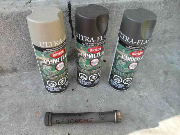 Colgué mi contenedor de un hilo haciendo pases rápidos cortos con varias pinturas en spray para obtener un look de camuflaje muy bien.