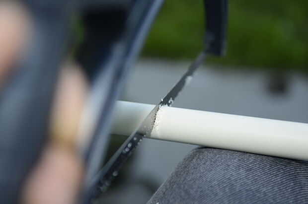 Una zona robusta para hacer el corte y utilice una sierra para metales para cortar a través del tubo como se indica en el paso anterior. (Yo sólo apoyados lo contra mi rodilla).