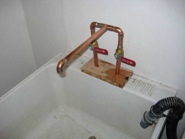 El grifo está hecho de tubo de cobre de 1/2" y accesorios, dos válvulas de bola de la soldadura y dos 3/8 de rosca.