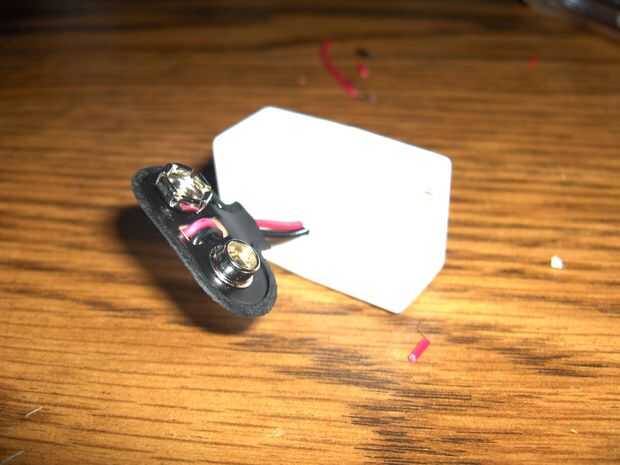 Si trabajan el sello el hilo de exponer con cinta negra. Dremel a raja un poco en uno de los lados. Se trata de donde sale el acoplador de los cables del conector de 9 voltios. El acoplador de cerca y tenga cuidado de no romper ninguno de los soldadores que hiciste anteriormente. Llevar los cables del conector de 9 voltios de esa raja. Ver foto.