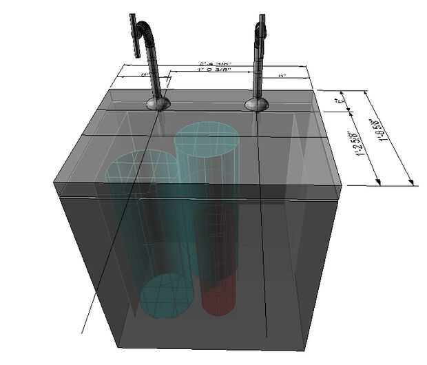 La primera imagen es de un modelo 3D rápido que hice para comprobar ajuste incluso antes de comprar cualquiera de los equipos y suministros - esto simplemente se basó en las especificaciones de fabricantes.
