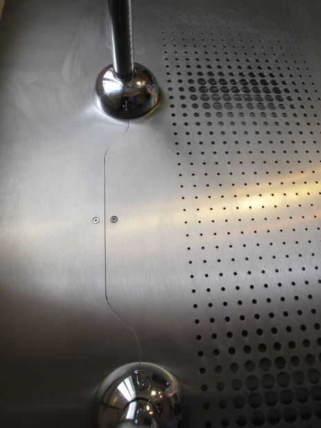 10. cuando el diseño de la parte superior, suponiendo que será láser, chorro de agua o plasma de alta definición, entonces usted probablemente debería diseñar en todos los agujeros de fijación - es mucho más rápido de lo que les de la perforación luego - sobre todo en acero inoxidable. Usted probablemente querrá coutersink los agujeros después de cortar así cabeza plana tornillos pueden sentarse a ras. Usted necesitará usar bastante pequeño flatheads si usas material de calibre 16. Utilizamos tornillos para madera #1 unidad cuadrada para sujetar nuestra tapa a los listones.