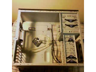 Diapositiva de disco duro unidades en las ranuras de 3.25"(en disquete) desde el interior. Una vez más, el tornillo en su lugar.