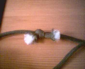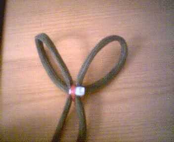 Doble la cuerda por la mitad y unir los extremos. A continuación, hacer un pequeño bucle en el en la parte inferior y atarla con un lazo de cable. Luego hacer un lazo doble en el otro extremo del lazo y atar con un lazo de cable.