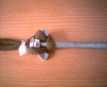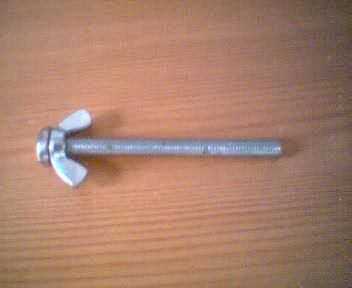 Poner la tuerca en el perno como showen (esta Asamblea se puede reemplazar mediante el uso de un perno con un lazo en la parte superior, creo que se llaman pernos de ojo o algo) A continuación gire el lazo único que hicimos con la atadura de cables en el botl. La tuerca de mariposa deja de venir el final.