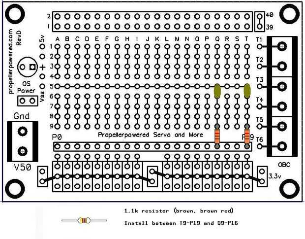 • Inserte las resistencias de dos 1.1 k T9 a P19 y Q9 para P16 como se muestra