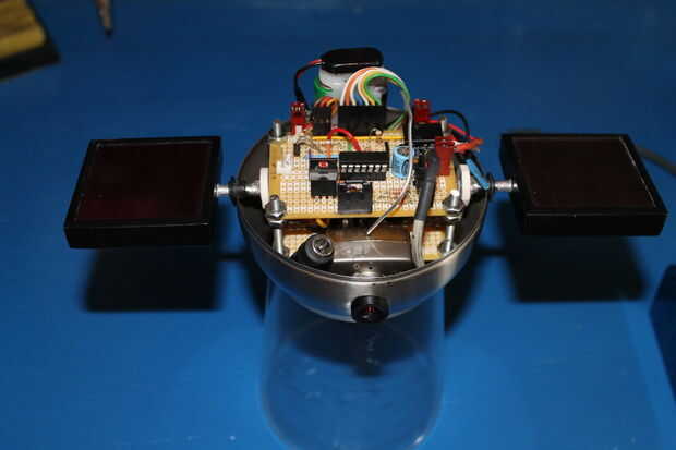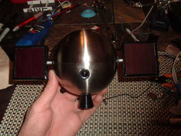 Los que hay izquierda hacer es ponerlo todo junto. Pude para mi chasis del asiento directamente en el cuerpo y guíese por los dos agujeros que perforaron para los tubos del Panel Solar y estabilizar todo. Pude mover el perfboards hacia arriba y hacia abajo a través de la varilla roscada para un ajuste perfecto. Una vez que termine me pre cargadas las baterías y cargado el programa. Ahora tengo mi propio "satélite espía".  El nombre de nick "Obama 1". Presidente tiene un poco algunas orejas jajaja.