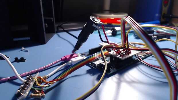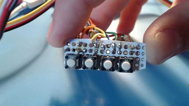 - La soldadura de una pierna del botón de selección (debajo del botón superior) a D5