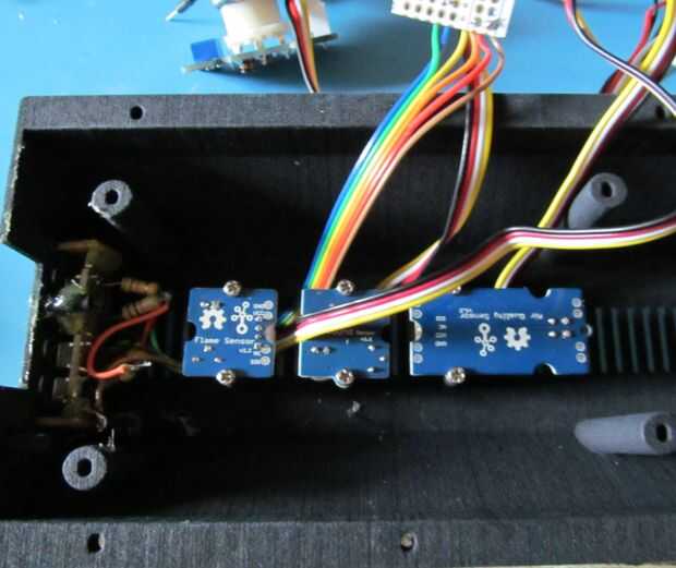 6. Tome algunos tornillos de M2 más y fijar los sensores zumbador, el gas y la temperatura a la otra mitad.