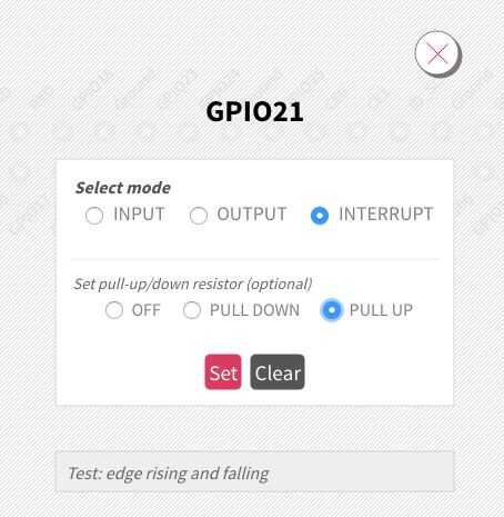 Cuando abra la aplicación GPIO, fácilmente puede empezar a anticipar para interrupciones haciendo clic en cualquier número de pin y seleccionar el modo de interrupción.