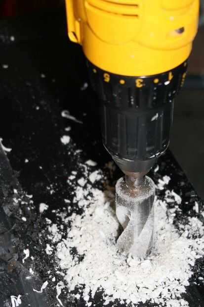 •Con una broca adecuada, perfore un orificio de 1" de la parte superior abajo del frigorífico. La parte superior es más probable aluminio fina, seguido por aislamiento de la espuma y luego plástico refrigerador funcionamiento interno. Medir desde el interior para ver cómo el refrigerador entonces es perforaciones profundas de 1" hacia el interior