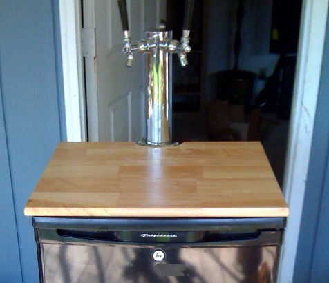 Bloque de carnicero - he visto un par kegerators caseros muy bonito que tenía una gruesa pieza de bloque de carnicero en la parte superior de la nevera. Hizo el kegerator en una tabla que sirve demasiado.