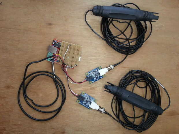 Su fácil de usar! Coloque los sensores en el agua y la electrónica en una caja impermeable proyecto. Extenderá una línea de Ethernet hacia el monitor y conéctelo a una fuente de alimentación.