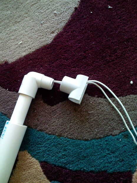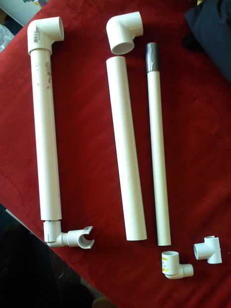 El pistón es una pieza 1"-diámetro interior del tubo de PVC con un pedazo de ½" PVC interior. El tubo interior deja todavía un margen de maniobra, por lo que envuelve cinta alrededor de la aproximadamente ocho vueltas para hacer un ajuste apretado un poco que todavía se deslice hacia adentro y hacia afuera. Al tubo interior que ha añadido una articulación del codo que se rosca en el otro extremo, que me dio rotación donde se conecta el pistón a la estructura. Para os adjunto un complemento "silla de montar común" que podría encajar en el marco de la misma y aún ser desconectado para el almacenaje fácil. En el extremo inferior he añadido una articulación del codo que une a un