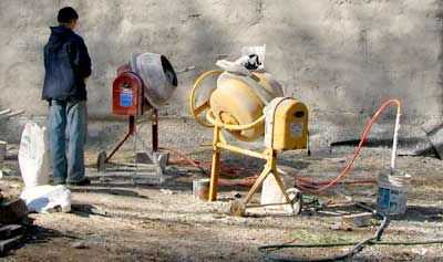 Un mezclador de cemento es esencial en un proyecto de esta magnitud. El que tengo es una unidad de cheapo y siempre estoy que jerry rig algo para mantenerlo trabajando.