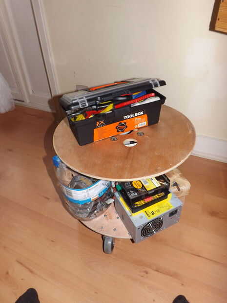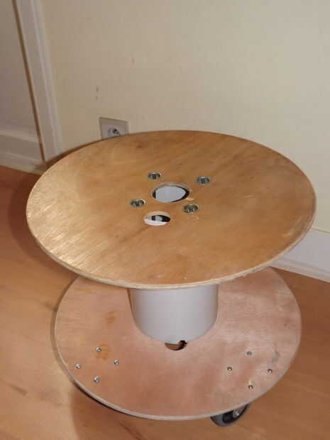 Por lo que he construido esta tabla Diy de un tambor de cable que encontré junto a una obra de construcción y había añadido 4 ruedas.