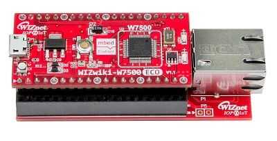 • WIZwiki-W7500ECO es una plataforma compacta basada en W7500, que es un SOC chip que integra un ARM Cortex-M0, 128KB Flash memoria y cableado TCP/IP base. W7500 es la mejor opción para dispositivos de IoT. Para más detalles, consulte el siguiente enlace: http://wizwiki.net/wiki/doku.php?id=products:wizw...