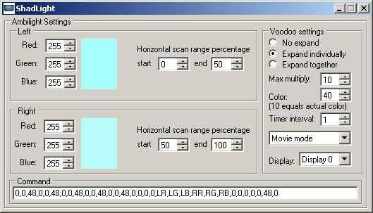 He encontrado un programa de código abierto llamado BobLight que fue diseñado para hacer efectos de Ambilight mediante un controlador personalizado. He tomado BobLight y modificado para trabajar con el LEDWiz bajo el nombre de ShadLight.