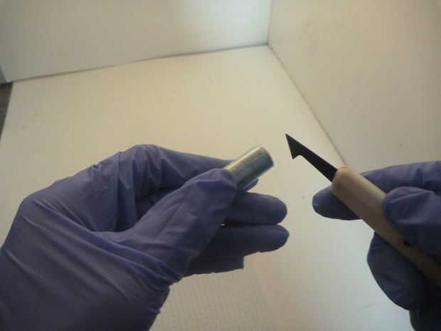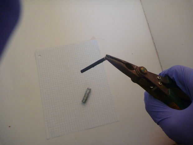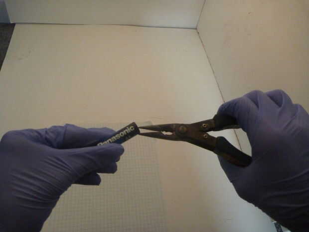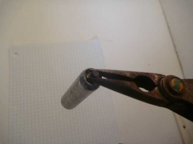 Para tomarlo aparte, necesita utilizar alicates de punta de pelar la capa externa de la batería uso un cuchillo para cortar la parte superior de la batería. Una vez su apagado, verás la parte superior de la varilla de carbono, tire lentamente hasta que la varilla de carbono hacia fuera.