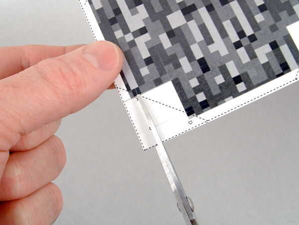 Usando el cuchillo de la manía y puntuación guía, cortar a lo largo de las cinco líneas discontinuas en la página para separar los paneles. (FOTO 5 - 1)