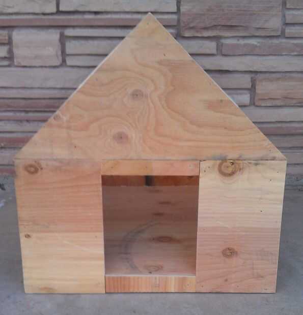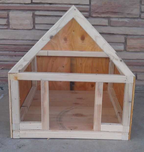 Foto 2 - lugar 3/8" madera contrachapada CDX contra la parte trasera de la casa de perro de rastro el panel de revestimiento lateral trasero. Recórtalo y luego fíjelo con tornillos de 1-1/2". Si quieres medidas, descargar mi plan en www.dogshackbuilder.com, es gratis.