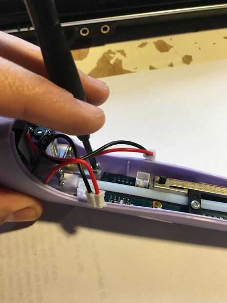 14. prueba el hilo de la pluma con la resistencia mientras que se enciende para asegurarse de que el motor de la extrusora todavía funciona correctamente.