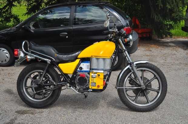 El proyecto terminado es un 1981 Kawasaki KZ440, convertido a eléctrico. Es accionado por cuatro Optima tapa amarilla sellado baterías lead-acid (AGM), que impulsan un motor eléctrico de Briggs & Stratton Etek. La velocidad del motor es controlada por un Alltrax marca "Hacha" regulador programable que puede ejecutar hasta 48 voltios y 300 amperios. Contrariamente a la creencia popular y eléctrica motocicleta no es silenciosa, pero es considerablemente más silencioso que un ciclo de gas típico.