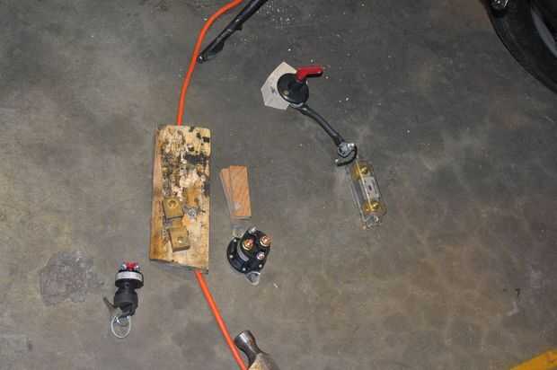 Las pilas se conecte o desconecte con un émbolo extraíble de "clave" rojo. Asegúrese de obtener una desconexión de alto amperaje. La corriente completa del vehículo va directamente a través de este componente. Todos los cables de la batería, fusibles, conectores, shunts, cierre y nada otra cosa llevar actual deben dimensionarse correctamente. Desde que estoy usando un regulador del motor de 300 amp, todo a 300 amperios tamaño lógico.