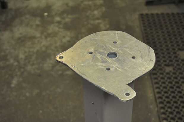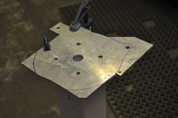 Construí mina de un pedazo de chatarra 1/4" placa de aluminio que tenía alrededor. La placa debe tener un agujero en medio para que el eje pase a través y cuatro agujeros en los lugares apropiados para los tornillos de montaje del motor a la placa.