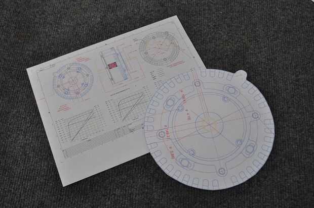 En lugar de hacer una plantilla desde cero, o perforación basado en medidas de cuidado del motor, simplemente hice mi propia plantilla de papel basado en el archivo PDF que ya tenía del dibujo mecánico del motor. En un programa de diseño gráfico, simplemente me aseguré que las mediciones en el diagrama de emparejar para arriba a escala real del 100% e impresión en papel. El motor es compacto lo suficientemente que la imagen entera en una 8.5x11 "hoja.