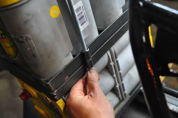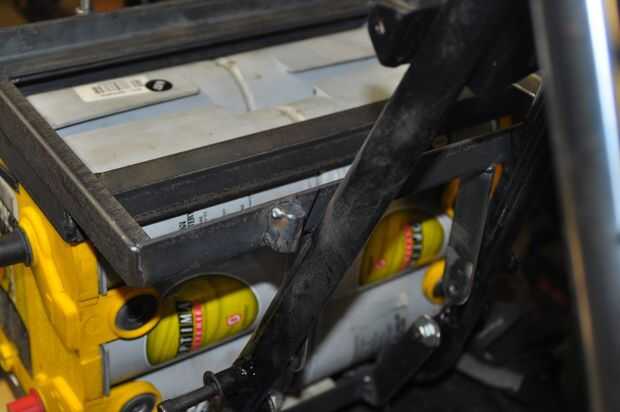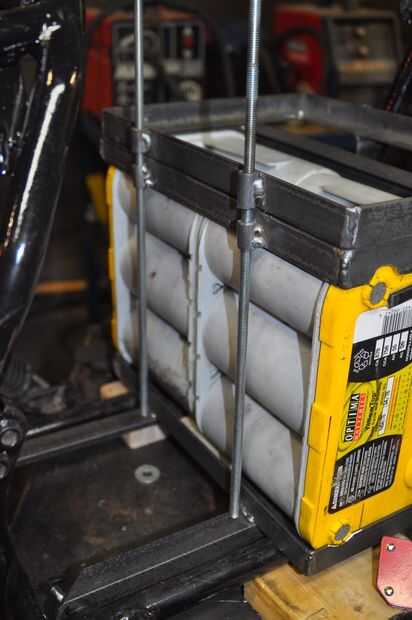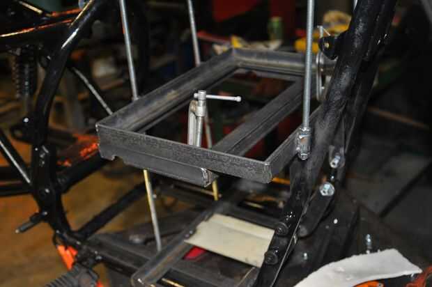 La parrilla consistía en 1" ángulo de acero, corte para hacer marcos que alrededor de las pilas y fichas que alcanzarían desde el marco de la batería a un motor existente punto de montaje en el bastidor de la motocicleta. Estaría hecho de varias "capas", debido a la disposición de las pilas - dos en la parte inferior, y dos montados por encima de ellos.