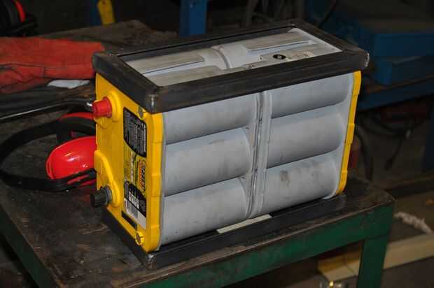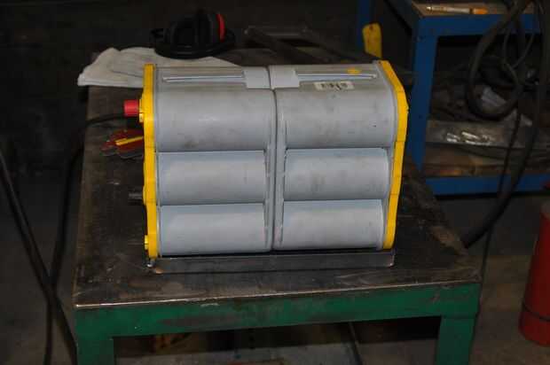 - Correas de la parte superior. Estas son sólo dos piezas de acero que van en la parte superior de las dos baterías principales mantener presionada. Varilla roscada va a través de sus extremos para atar a las otras partes de la rejilla de batería. Esto es muy similar a un típico amarre para una batería de coche. (Las cintas superiores están aisladas y no acercarse a los puestos principales de las baterías superior.)