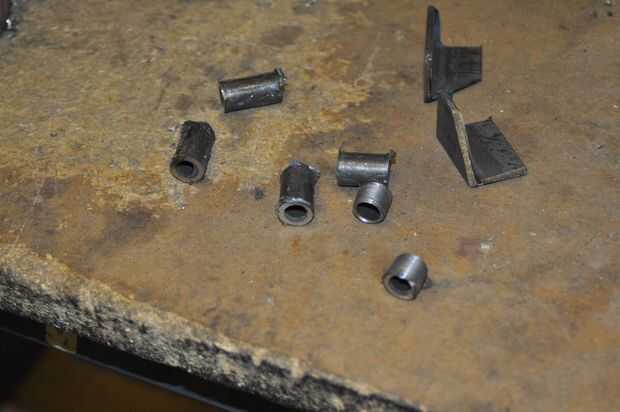 En la parte posterior de las piezas del bastidor, soldados algunos pedacitos cortos de tubos de acero, diámetro sólo un poco más grande que la varilla roscada que estaba usando. Estos son "los agujeros" que pasa la varilla roscada para alinear todas las piezas y los sandwich juntos.