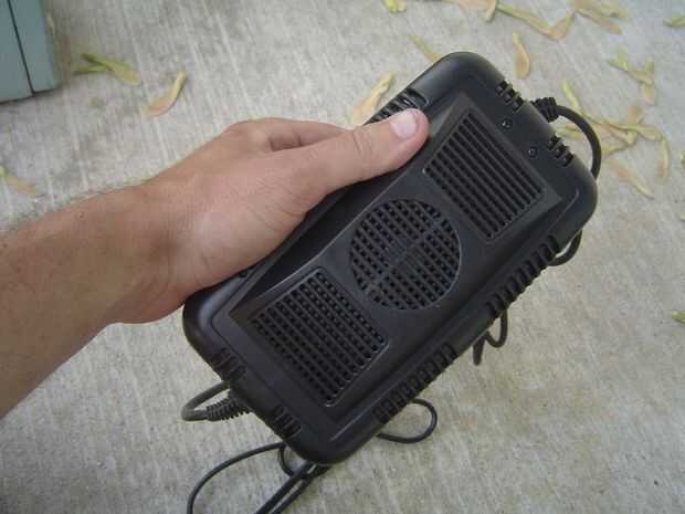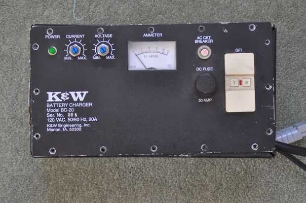 Comenzó originalmente con un cargador de scooter muy compacta 5-amp 48V que mantuve a bordo del ciclo. Por desgracia, fue una mala calidad de marca que finalmente dejar de trabajar. Después de eso, puse un Anderson desconecte en el ciclo por lo que rápidamente pude conectar y desconectar un cargador voltaje variable. Ese cargador es grande y pesado y permanece en mi garaje. Variable es voltaje, por lo que puedo cobrar en cualquier lugar de 12-72 voltios. Cuando no lo estoy usando para cargar el ciclo, puedo cargar mi batería de coche 12V o mi 36V eléctricos cortacéspedes de césped del montar a caballo. Si actualicé mi motocicleta a 72V, podría utilizar el mismo cargador y solo gire el otro dos clics!