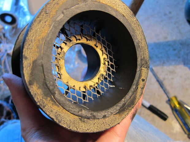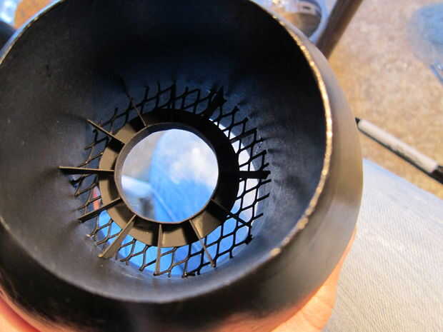 Si te fijas en la parte delantera del cañón podrás ver lo que parece una parrilla y un pedazo negro de sunburst-como coloca aproximadamente 2" desde el borde del cañón. Para difundir la luz que brilla por el cañón, capas de hojas delgadas de espuma directamente detrás de la reja de embalaje. Probablemente puede conseguir lejos con el uso de cualquier tipo de espuma que te gusta... teniendo en cuenta el material que utilizamos es bastante genérica y sin nombre.