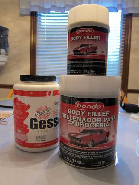Acerca de un galón de Bondo + endurecedor extra (nos sopló a través de contenedores de dos cuartos y entonces dio para arriba y compró un galón. Todavía está con nosotros)