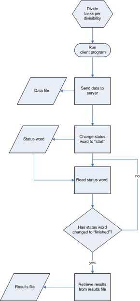 El programador de tareas de Windows inicia el programa de servidor de cada vez que se reinicien los servidores. Una vez funcionando la primera tarea es su archivo de datos de estado. Cuando un programa de servidor, por ejemplo encuentra la palabra "start" en el archivo de estado se cae fuera de la fase de control y empieza a procesar los datos encontrados en el archivo de datos previamente enviado por el cliente.