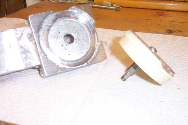 . Pensé sería pulir la Ronda "cojín" que enciende la CSB. Tenía un disco de madera de hacer el patrón, con un orificio central situado, así que me quedé solo en un disco de papel de lija, un emparrado de gawd-sabe-qué a través de él y comenzó a pulir. Se puede ver cerca de la mitad realiza, sobre todo en el lado derecho de la ' mango ". Se ve bien! Puede incluso ser parte del esfuerzo.