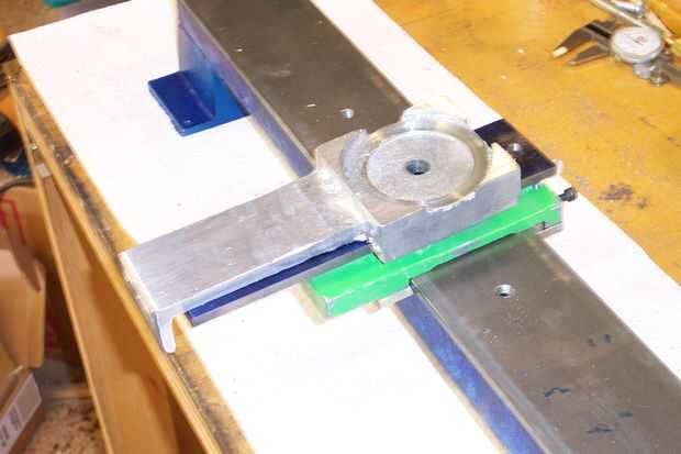Las partes azules son las bases y la cama, apoyar a las "formas". Las formas son (es) una tira de 3" ancho, 1/4" de espesor de acero en frío (CRS). Es bastante sólida y pesada, pero realmente puede doblar un poco, por eso es importante que la cama esté precisamente muy, muy plana, como las formas se pernos muy firmemente a la cama y así seguir su llanura (o falta de ella). La cama que eche, como recordarán, tiene casi 2mm de la inmersión en el centro. Que puede sonar como muy poco, pero de hecho daría como resultado inaceptable imprecisión--la mayoría de máquina-herramienta trabajo se especifica en términos de milésimas de pulgada. es de 2mm alrededor de 1/12 de pulgada--un error enorme en tierra de mecanizado.