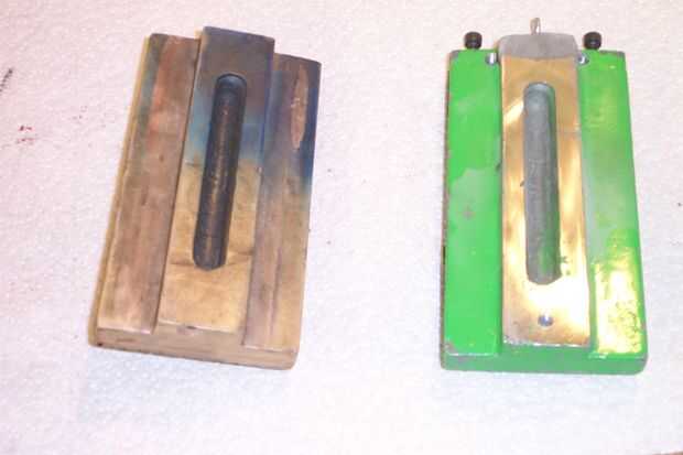 Nota los ojos de tornillo en el patrón de madera. Fines 2: te dan algo para agarrar a tirar el diseño en el molde de arena, y son a rap en aflojar el patrón por lo que se puede sacar la mano.